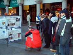 ![]() kapell桥附近的天鹅广场上的反酷刑展 | ![]() kapell桥附近的邮局广场的信息摊位 |