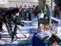 法轮功学员们之所以在冰天雪地里设立这样的摊位并演示中国法轮功学员所遭受的部份酷刑就是希望能有更多的人来了解正在中国发生的对人权的侵害,对好人的迫害。因为中共的谎言遍布世界,有些西人也无法了解事实,所以他们希望以自己和朋友们的亲身体验来呼吁人们共同制止这场非人的迫害。