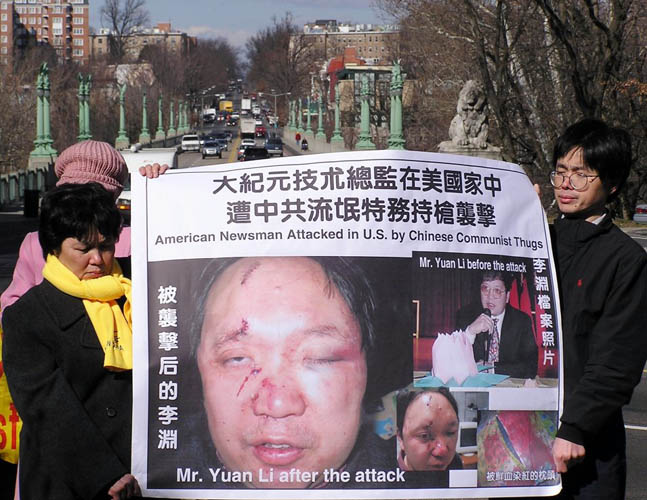 法轮大法信息中心华府发言人黄祖威博士说,中共在美国自由土地上的恐怖活动必然引起美国社会和国土安全局的关注。此次中共针对的不是一个普通的人,而是一个敢于撕开中共黑幕的具有很大影响力的媒体高层人员,这种带有政治封口的打砸抢恐怖行为 -- 一种国家恐怖行为就在美国的后院被中共流氓特务操纵,美国政府绝不应等闲视之。