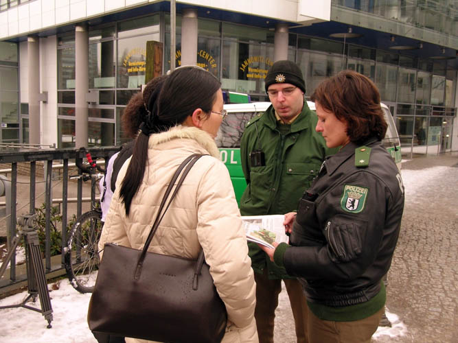![]() 進中使馆前,郑女士给值班警察讲护照事件和共产党本质,警察手中拿着的是德文《·九·评*共产党》的简介和部份内容。 |
