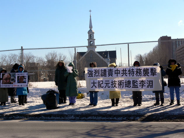 大.纪.元;渥太华分社负责人辛琦华女士在声明中说,中共正将黑社会的手段输出到海外,中共在海外数以千计的特务已经给海外华人带来了巨大的威胁。前天发生的大.纪.元;技术总监李渊在家中被中共流氓特务持枪袭击就是一例。我们不能面对一个邪恶流氓政权对文明的践踏而无动于衷!