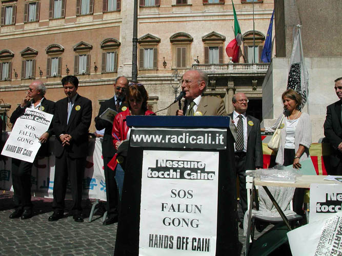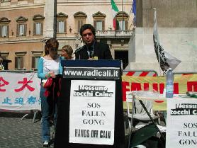 ![]() 在首都罗马举行的援救受中共迫害的法轮功学员的新闻发布会上,意大利参议员讲话 |