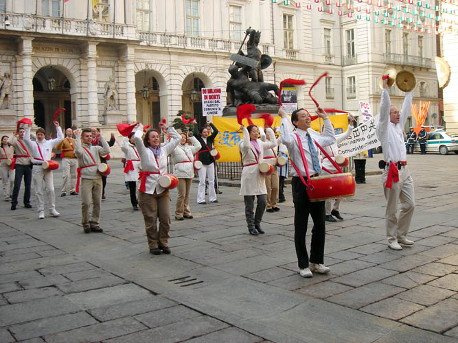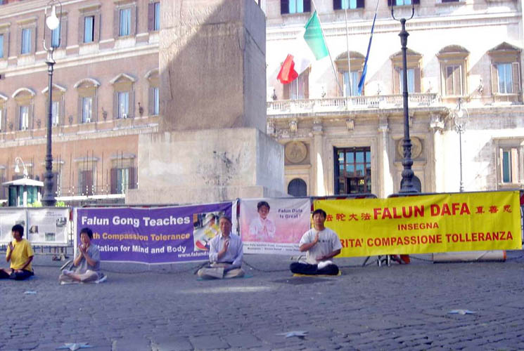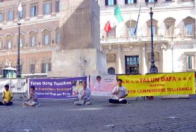 针对1999年7月20日由中共前党魁江××和共产邪*党-发起的对法轮功的迫害,意大利学员同其它海外国家的同修们一起,用和平理性的方式,向世界各国政府和民众讲诉法轮功和这场无理迫害的真实情况,揭露中共恶党集古今中外的一切邪恶手段,对法轮大法修炼者实施的国家恐怖主义政策。