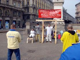![]() 在米兰市中心举办真人模拟的反酷刑展 |