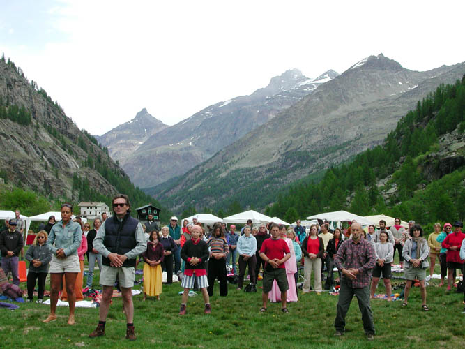 ![]() 在大天堂山下意大利民众的炼功场面 |