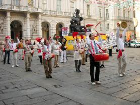 ![]() 在都灵的皇宫广场上洪法和讲真相 |