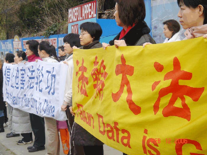 【明慧网二零零六年二月十四日】(明慧记者李华温哥华报道)2006年2月12日中午,温哥华法轮功学员在中领馆前集会,抗议中共特务偷袭暴打亚特兰大法轮功学员李渊博士。