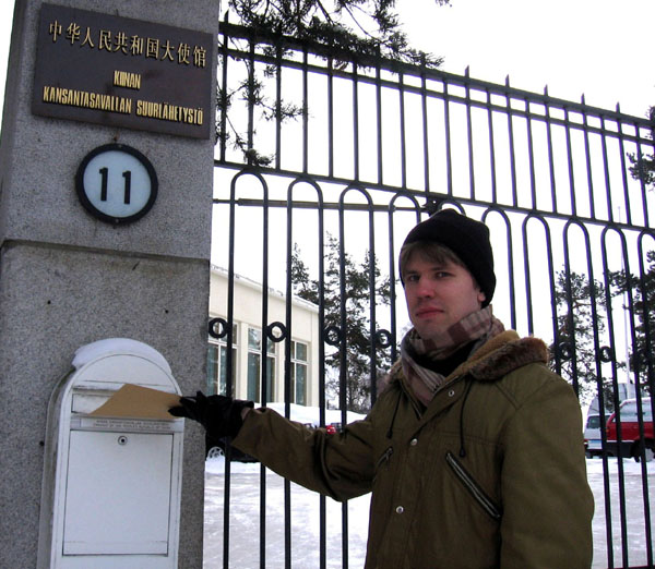 活动中学员分别用芬、中、英文宣读了给中使馆的公开信。信中写道: