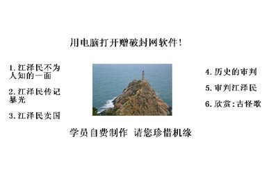 打开 开始/程序/附件/画图程序,编辑/粘贴来源,找一幅有特定象征意义的图片,调好图片位置,在该图片四周用左侧的A文字功能模块在虚框内写上:“用电脑打开赠突破网络封锁软件 自费制作 请您珍惜”等话,和光盘目录,选中文字点右键可以使用‘文字工具栏“调整字体、大小等,以此提醒人们知道盘内还有上网工具,保存为JPEG文件备用,授之以鱼不如授之以渔嘛;