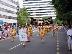 【明慧网2006年2月20日】澳洲首都堪培拉每年都举办多元文化节,而2006年的文化节又增加了一个节目 - “和谐游行”(Harmony Parade)。这是堪培拉六年以来首次举行如此盛大的游行,参加者包括六十多个社团、组织。2月18日下午,虽然烈日炎炎,身着各式彩装的人们仍然兴致勃勃的在市中心集中列队。游行于4点钟开始,历时近两个小时。人们载歌载舞,吸引了众多市民的围观。