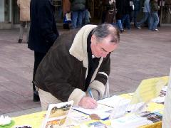 街道上变的熙熙攘攘。提着购物袋的路人,推着婴儿车的妇女,带着孩子的家庭,年轻人,老年人都来到这里,在摊位前留连。有时想签名的人还要等候,因为签名的人太多了。尽管如此,人们都平静而耐心的等候着。