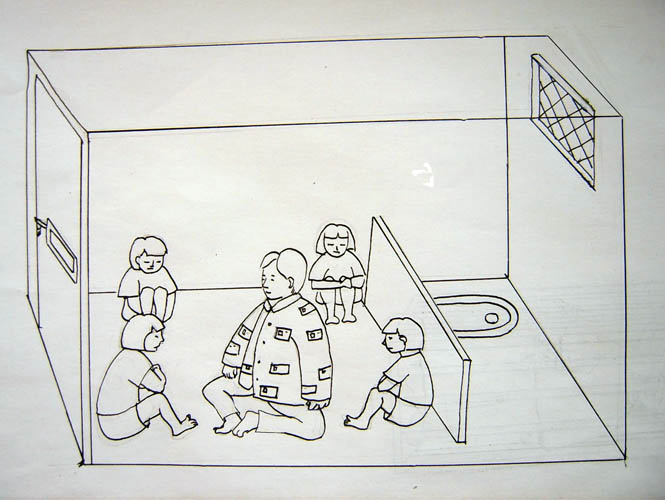 在一个小号内,四个犯人包夹一个大法弟子,身后用一块板挡着,就是便厕。夏天强迫大法弟子穿上棉袄,为怕大法弟子脱下棉袄,棉袄对襟用机器扎上,手撕不开。因大法弟子不戴监狱管理犯人的小牌,在棉袄上缝上很多犯人小牌。大法弟子手一动,包夹犯人便上来拳打脚踢。犯人还踩大法弟子的脚踝。有的大法弟子穿着棉袄六天六夜被逼不让睡觉。