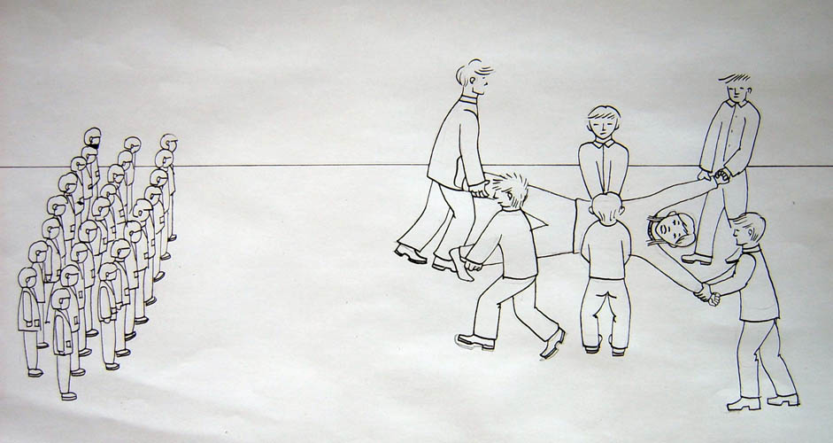 大法弟子不转化,把大法弟子和一个犯人投入小号,分别用手铐铐上,两人手铐交叉铐着。犯人睡觉,不许大法弟子睡觉,只能九十度哈着腰。