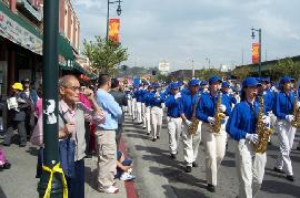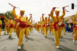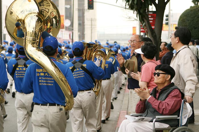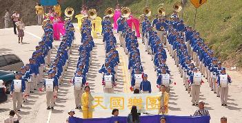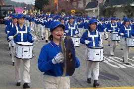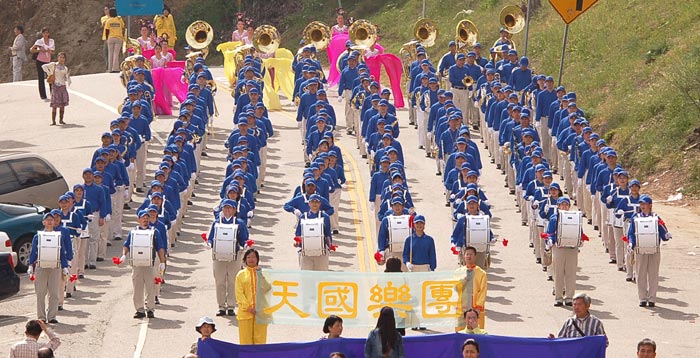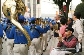 “天国乐团”军乐队演奏了“法轮大法好”、“美丽的美利坚”、“法鼓法号震十方”和“法正乾坤”。观众有的鼓掌欢呼,有的翘起大拇指。一位观众说:“乐队很壮观,音乐很美。”