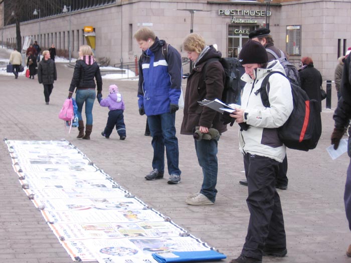 一位芬兰男士看着真相图片说:太可怕了,迫害不能再继续,他们也需要其他国家的人民的帮助。