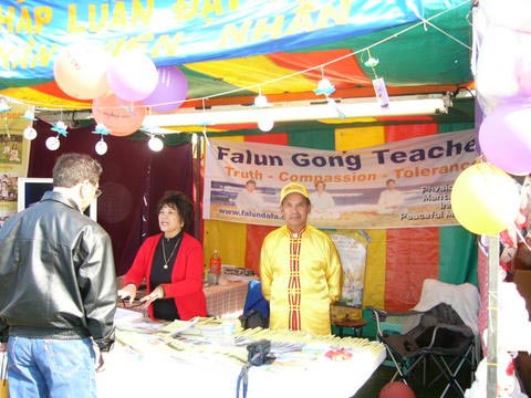 【明慧网2006年2月4日】2006年1月27日,位于美国加州橙县(Orange County)的果园公园(Garden Grove Park)有一连三天的越南新年节庆,节庆的目的之一是为了保持传统的文化精髓。洛杉矶法轮功学员在这次新年庆典中,向民众展现优美祥和的五套功法,带来最美好的新年祝福。