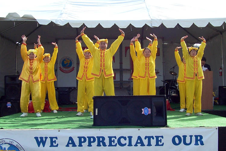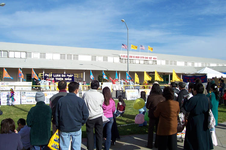 一年一度的越南嘉年华会在北加州圣荷西市举行,每年吸引5万多人参加,人们从圣荷西以及附近的城市来这里欢庆越南新年。法轮功学员表演了舞龙、腰鼓舞、彩带舞等,以及法轮功功法,获得了观众的热烈掌声。