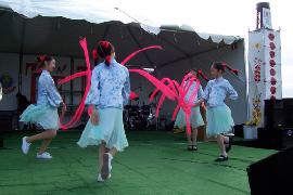 ![]() 喜庆的腰鼓舞 | ![]() 明慧学校小弟子表演的欢快的彩带舞 |