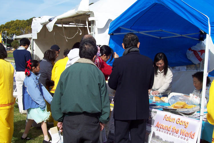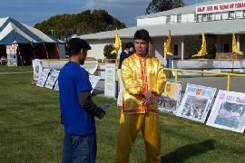 越裔法轮功学员黎女士介绍说,法轮功是第四年参加这个活动。主办单位非常支持法轮功。黎女士说:“我们的摊位很大,正常场地费是$1500美元,但主办单位只是象征性的收我们$200元。还给我们免费准备了60人份的午饭。”
