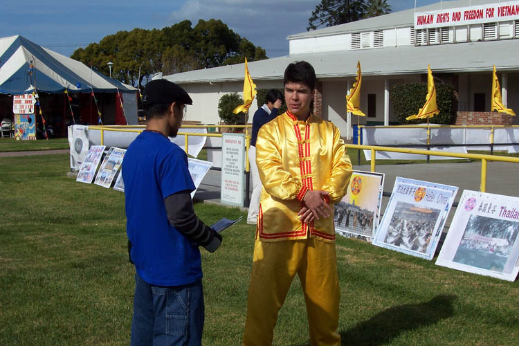 黎女士说,在活动举办之前,主办者在越南文电视台上的广告特别强调活动中有法轮功学员表演功法,有兴趣学炼法轮功的观众可以到法轮功的展位学,法轮功有一个很大的场地,免费教授功法。