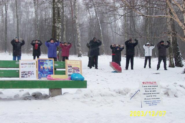 【明慧网2006年2月6日】在莫斯科最大的森林公园里,有一个法轮功炼功点.这个炼功点从2001年开始建立,至今已进入第六个年头了。不管酷暑还是冰雪覆盖的寒冬,莫斯科法轮功学员都愿意来这里炼功,所以它也是莫斯科比较大的一个室外炼功点。