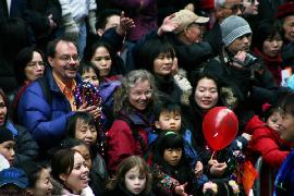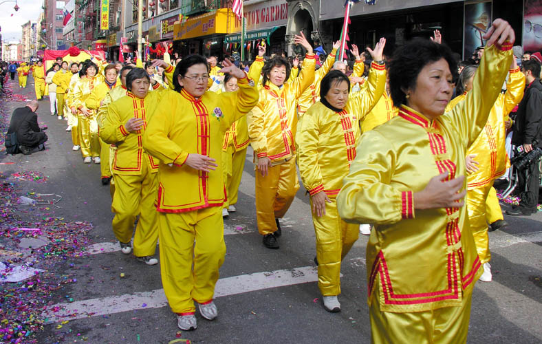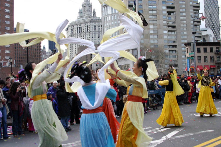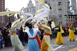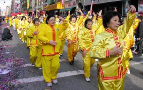 同一天上午,一部份法轮功学员还参加了在纽约的另一华人集中的社区布鲁克林举行的新年游行活动。受到当地社区民众的热烈欢迎和赞叹。一些民众甚至一直追随法轮功队伍,为他们的风采鼓掌喝彩,感谢他们在中国人庆祝传统新年的欢乐时刻,给社区的民众所带来的欢乐与祥和。