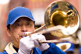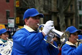 法轮功学员新组建的大型军乐队方阵是首次在曼哈顿中国城亮相,他们在行进中奏出“法轮大法好”、“法鼓法号震十方”等洋溢着正气与喜悦气氛的乐曲,成为此次游行中最令沿途观众震撼的一道亮丽风景线。由西人学员舞动的巨龙变化多端,也威武有力。仙女队及腰鼓方阵的表演引来观众不断喝彩和掌声。