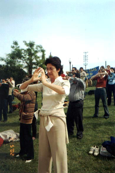 一位武术教练闻讯也带着他的十几名学生前来学习法轮功,并在展览会结束之后的日子里,每周两次请法轮功学员到他的武术学校教授法轮功的五套功法。