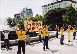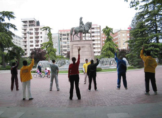![]() 在首都马德里市中心的西班牙广场洪法炼功 |
