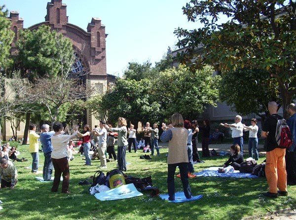 一走進博览会入口大门,首先映入人们眼帘的便是在草坪上正在展示优美功法的法轮功学员们的身姿。来自西班牙各地的参观者们纷纷驻足凝神观看学员们的功法演示,不时听到从人群中发出的赞叹声:“啊――法轮大法,真美啊!”、“太美了!”不少参观者拿出相机拍下这一被人们称之为“健博会的一道特殊景观”的法轮大法炼功场面。博览会主办者也开玩笑的对法轮功学员说:“法轮大法快成了博览会的专场展示会了。你们知道吗?法轮大法是唯一享有可以在室外展示这一特权的参展者。”