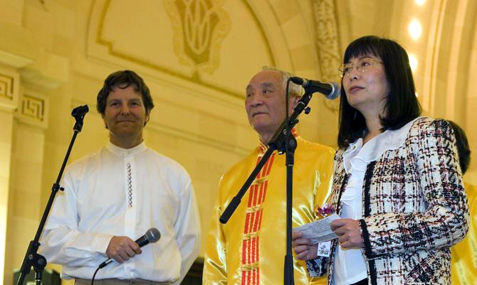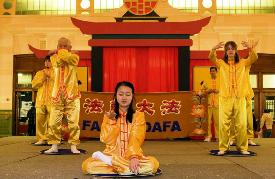 五位学员上台表演了法轮功五套功法。表演前,77岁的华人老学员向观众介绍说,法轮大法使他摆脱了20多年的疾病,得到了健康的身体。22岁的西人学员说,他发现他的几位朋友在修炼大法后变好了,于是他也开始学习。因为修炼大法,他在精神上、身体上都有很大改变,并且能够有责任感了,也学会了与人更好的沟通。12岁的华人中学生对大家说,修炼大法使得她在校内校外都受益无穷,能够更专心致志了。因为按照“真善忍”做事,她与别人的关系也更好了。主持人向观众介绍了法轮功学员在中国被迫害的情况,希望更多的人们了解真相,共同制止迫害。