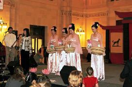 几位女学员的舞蹈表演“花仙”和“莲花舞”以柔和美好深深吸引了观众。一位美国人赞赏说,“太美了!”整台表演结束,“仙女”们向台下观众散发莲花,把新年祝福带到高潮。