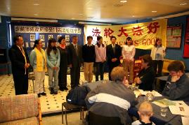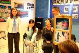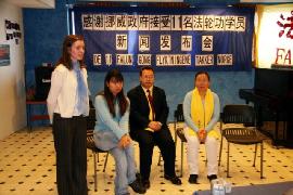 参加新闻发布会的有法轮功人权组织(THE FALUN GONG HUMAN RIGHTS WORKING GROUP)的工作人员加拿大人Jan,挪威法轮功学员Terese,博德市媒体的记者和部份本地市民。