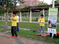 还有一次,学员们炼完功后走向停车场取车,迎面走来一个青年,看见学员穿着写有“法轮大法”字样的衣服,知道是炼法轮功的,马上很兴奋的向学员们敬礼,然后跟每个人握手,说:“你们之前发过资料给我,我都看了,可惜我没有时间跟你们一起炼。”