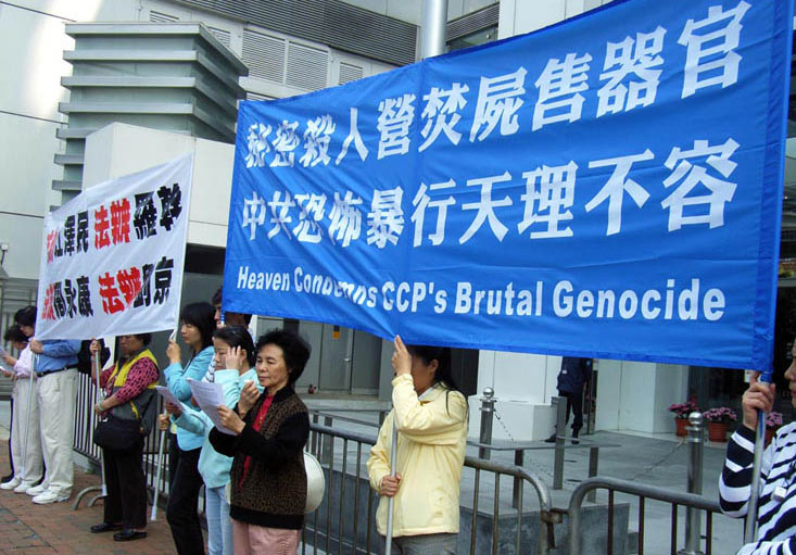 数十名法轮功学员10日白天在中联办外静坐,下午2时许,学员从静坐地点游行到中联办正门宣读声明,指中共迫害法轮功的“苏家屯秘密集中营”的灭绝人性和卑鄙无耻,超出了人们能够想象的地步,表明中共在迫害法轮功中已经把屠杀、牟利、毁灭杀人证据这3个步骤大规模系统操作。在21世纪的今天,中共用焚尸炉,用比纳粹迫害犹太人更残酷的手段来迫害最和平善良的法轮功学员,如此惨绝人寰的暴行,人神共愤,天理不容,如果任由这一罪行再度发生,文明将不复存在。正在香港访问的英文大.纪.元;时报编辑斯蒂芬•格雷戈瑞(Stephen Gregory)发言说:“苏家屯就是野蛮的代名词。从今以后,我们清楚知道,这是一场文明与野蛮的斗争。”