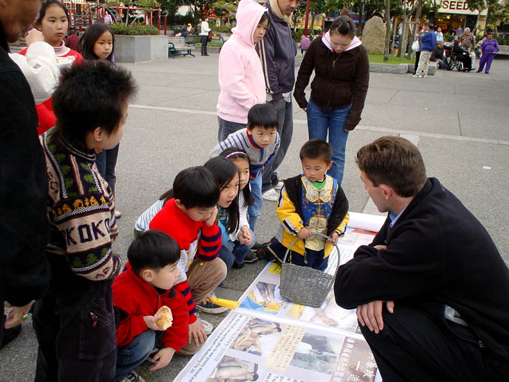 一位讲真相的西人学员说,他听到唐人街居民讲令人震惊的事。他把《·九·评*》递给一位年纪很大的老人,他只有一颗下牙。老人看着《·九·评*》,指着中国共产党几个字说“不好!”而后又告诉学员,在大陆他的家乡小镇,共产党几乎杀了他全家,幸存者之一残废了。他反复告诉学员共产党毁坏他家园和村里的宁静,毁了他的生活。学员告诉老人,神要灭中共。