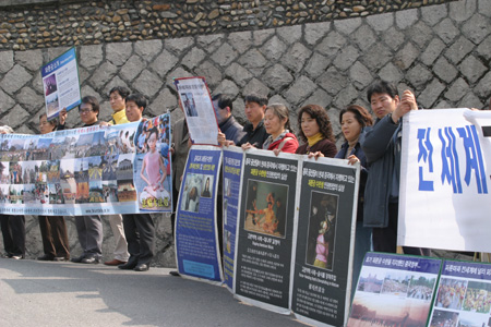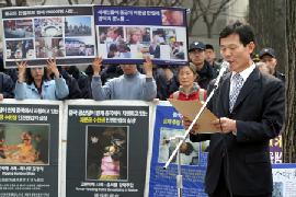 ![]() 韩国法轮大法学会副会长崔锡正在集会上发表严正声明,强烈抗议中共恶党残酷迫害法轮功学员的法西斯行径,并呼吁全球各界关注和协助调查。 |