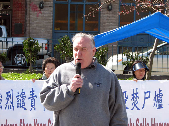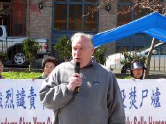 中国问题研究专家兼作家罗杰•坎菲尔德(Roger Canfield)表示,很荣幸能参加今天的反对中共邪恶的正义集会。他说:“集中营是一种恐怖手段,早已被世界正义力量所淘汰;然而中共今天还在使用,我们应该制止这种暴力行为。”