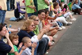 今天的天气很好,和风阵阵,气温高达华氏七十多度,再加上游行中随处可见的绿色,人们已经可以感受到春天的气息了。而“天国乐团”感人心扉的鼓号声似乎更在唤醒还未从严冬中醒来的人们,春天的脚步越来越近了。