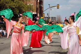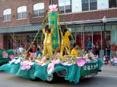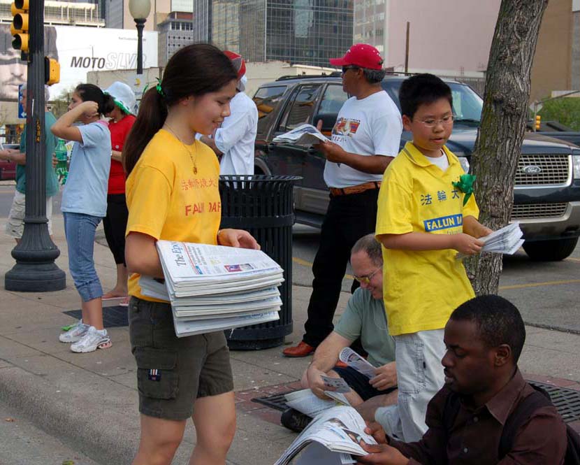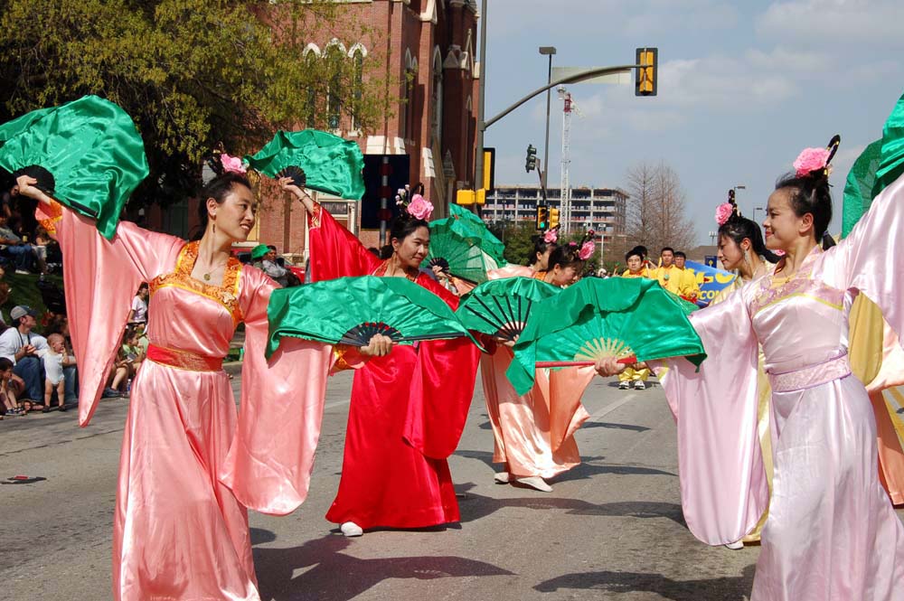 三月的北美,已现初春的气息,而位于美国南部的达拉斯已是春风拂面。许多附近的居民、游人早早的等待在路边的草地上等待观看游行。游行下午两点开始,起点位于市中心的文化区(Art district)附近,沿Russ大街到West End结束。法轮功学员的队伍由花车、大型横幅、舞蹈队、唐鼓队组成,在参加游行的几十个团体中显得非常的突出。