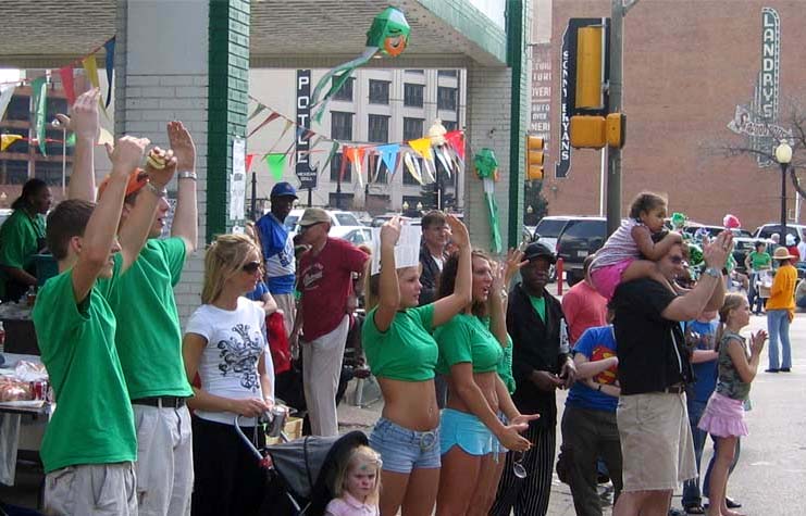 圣派翠克节(St. Patrick Day)是为纪念将天主教传入爱尔兰的派翠克教士而设立的。大游行最初以展示爱尔兰文化为主,之后越来越多的人们所参与。游行以绿色为标志,不论是在参加游行者,还是观看游行者中,各种绿色的饰物随处可见。
