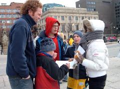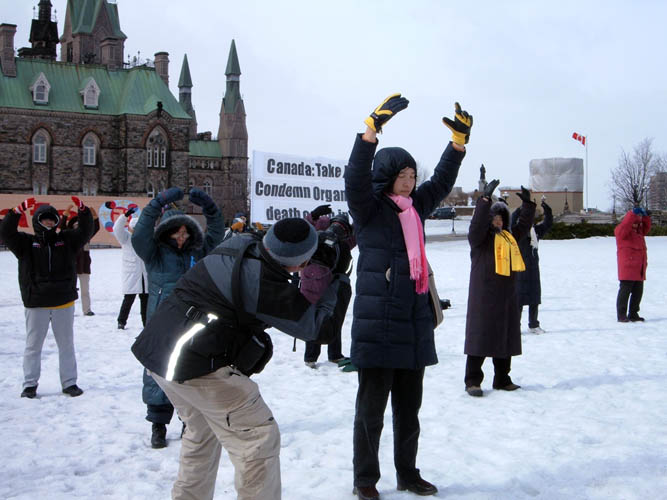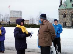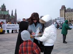 3月15日,渥太华的气候仍在零度以下,北风呼啸。15名法轮功学员坚持在风雪中绝食三天。他们的行动得到了无数善良和正义的人们的支持和关注。人们主动来了解真相,并纷纷签名支持。当地的媒体CITY TV、太阳报、公民报、中央社和CTV NEWS 到现场做了采访。