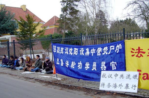 丹麦法轮大法学会代表用丹、中两种语言,在中使馆前宣读这一中共罪行,呼吁中使馆内工作人员,认清邪*党-本质,早日唾弃这个无恶不作的邪*党-,投奔光明。