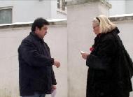 在中使馆前,法轮功学员向过往路人介绍了正在中国发生的恐怖罪行。人们感到震惊。