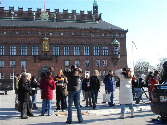 3月12日,星期天,学员们齐聚哥本哈根闹市区,一位住在邻近城市的瑞典西人学员,也专门赶到哥本哈根,来参加讲真相活动,为营救中国大陆遭受迫害的同修尽一份心。