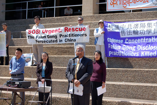 法轮功学员,任教于泰伦社区学院的吴博士在发言中说,1946年,当纽伦堡国际大审判惩处那些对大屠杀负有责任的纳粹战犯结束后,人们共同希望象Auschwitz 和 Buchenwald 那样的集中营再也不会出现在人类历史中,然而不幸的是,一个类似的集中营正在中共统治下的中国运行着,实施着江泽民和中共对法轮功的“肉体上消灭”的灭绝政策,不仅如此,他们还在受害者身上牟取暴利。这充分反映了中共的邪恶本性,这是天理不容的事情。吴博士呼吁国际社会和人权团体调查苏家屯内幕,呼吁所有善良的人帮助制止中共对善良人的虐杀。