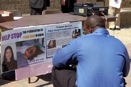 法轮功学员,任职于EDS 的信息处理专家张女士在发言中介绍说,关押法轮功学员的集中营早在几年前就见诸报导。据法新社2000年10月1日报导,两所专门用于关押法轮功学员的集中营已经建成,一所在西北,一所在东北,每个集中营都可容纳五万人。据明慧网2000年10月6日报导,一所专门关押法轮功学员的集中营在偏远的新疆建成,知情人士透露看见有法轮功学员被用火车押往新疆集中营,但没人知道之后发生的事情,因为没人从那里出来。