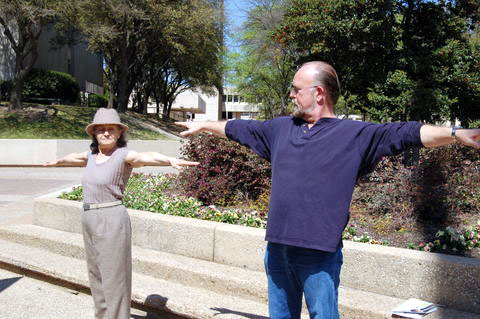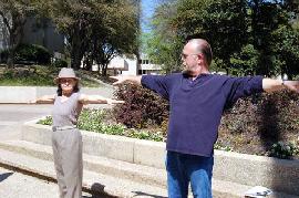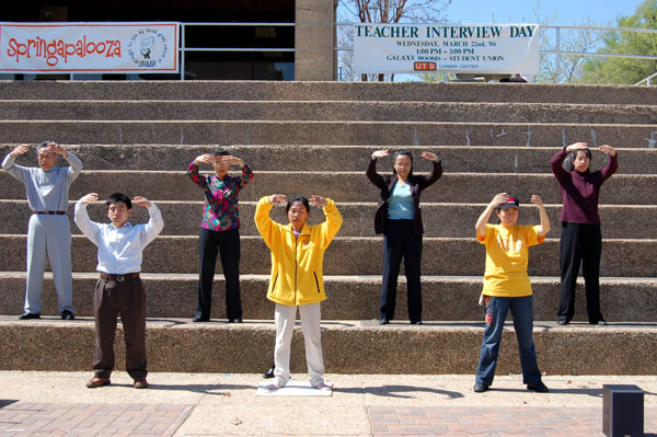 ![]() 法轮功学员演示功法 | ![]() 对过往学生讲真相 |