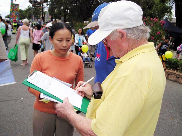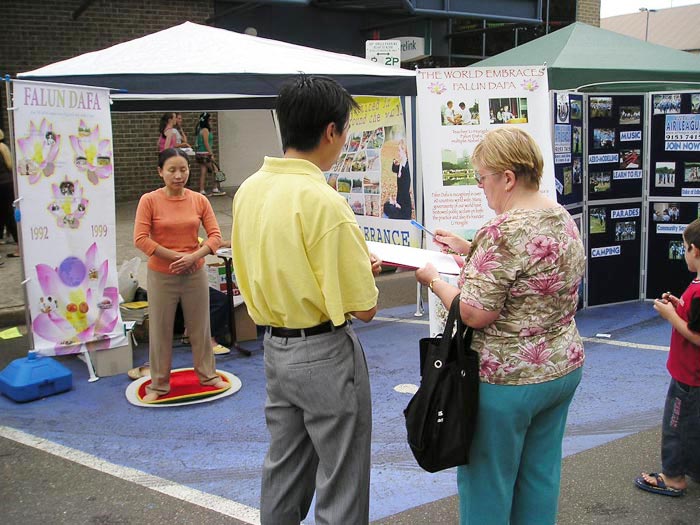 【明慧网2006年3月19日】一年一度的澳洲悉尼鹰歌本节的庆祝活动于2006年3月18在鹰歌本商业中心举行,成千上万的人们参加这一活动。当地和邻近的法轮功学员也来到这里向民众讲述“苏家屯事件”的真相。学员们申请了摊位,并在舞台上表演了法轮功功法以及学员的独舞。同时向观众们進一步讲述了什么是法轮功以及在中国大陆共产党政权对法轮功六年多的,特别是“苏家屯集中营”的真相。