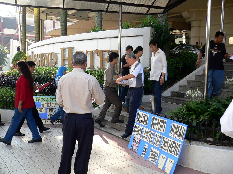 法轮功学员在律师开会的场地外派发资料,后来还去找律师公会的秘书解释学员们派发的资料的重要性和苏家屯集中营事件的严重性,同时向他们表明很需要马来西亚的律师关注这件事情。在了解到所要传达的信息后,秘书决定让法轮功学员到律师公会的开会场所去派发,学员带去的资料不到一个小时便派发完毕。